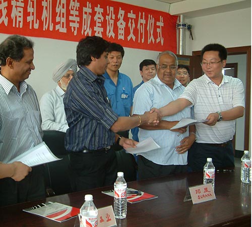 2008年8月我公司的高線精軋機組等設備成功出口印度SURANA公司,實現國產設計速度115m/s,保證速度95m/s的高線設備首次出口。